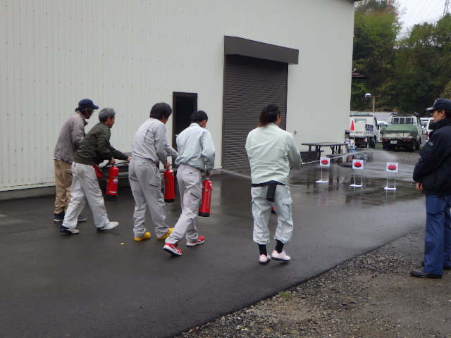 また、来賓を招いての安全講話のほか本年度は、消防署様の協力のもと初期消火訓練、通報訓練、避難誘導訓練を実施しました。